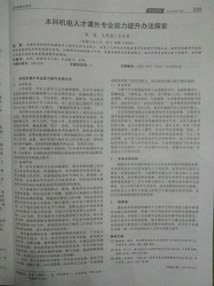 09序號支撐1:《本科機電人才課外專業能力提升辦法探索》正文