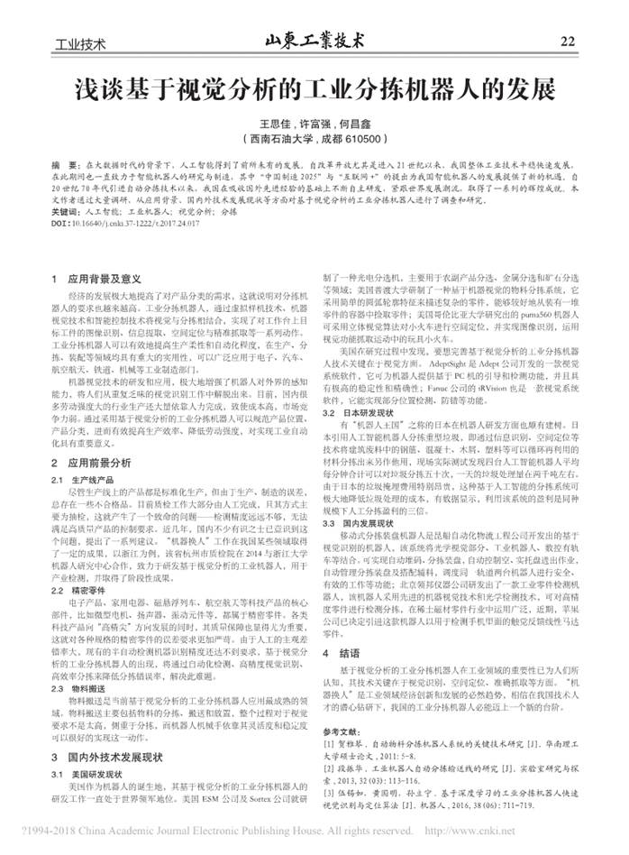 10序號支撐1:《淺談基于視覺分析的工業分揀機器人的發展》正文