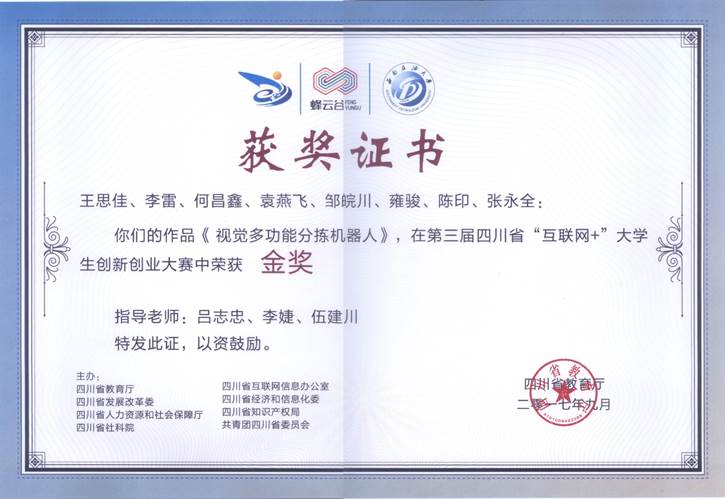02序號支撐:第三屆四川省互聯網加大學生創新創業大賽一等獎