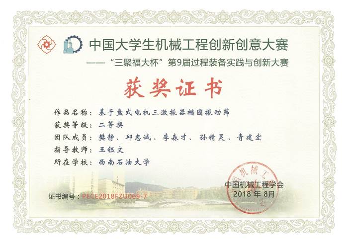 01序號支撐:中國大學生機械工程創新創意大賽——“三聚福大杯”第9屆過程裝備實踐與創新大賽二等獎