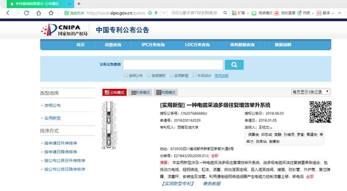 03序號支撐2:一種電磁采油多級往復增效舉升系統(專利網截圖)