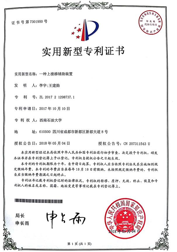 01序號(hào)支撐1:一種上樓梯輔助裝置(ZL201721298737.1)