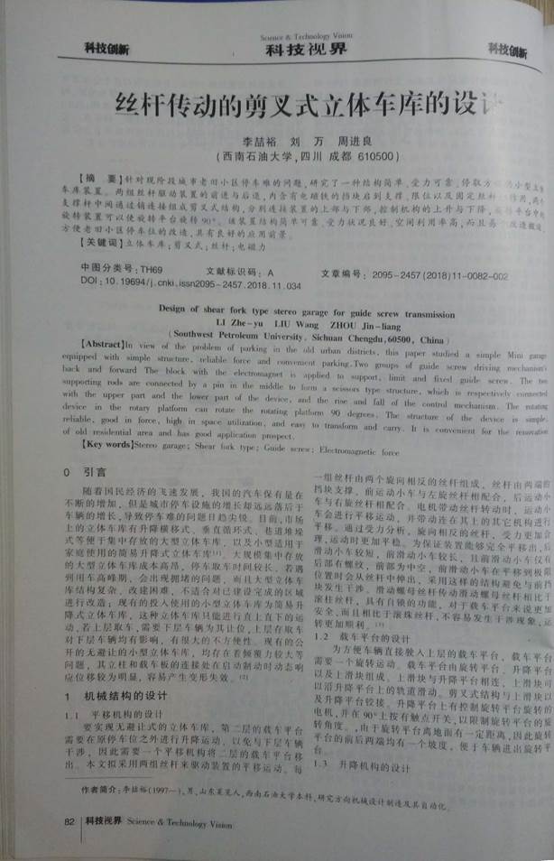 08序號支撐3:《絲桿傳動的剪叉式立體車庫的設計》正文1
