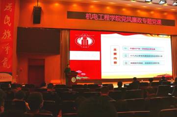 2020年10月20日,機(jī)電工程學(xué)院邀請學(xué)校紀(jì)委副書記侯永剛同志為學(xué)院全體黨員講黨風(fēng)廉政專題黨課。侯永剛書記以《認(rèn)清反腐倡廉新形勢,做知敬畏守底線的合格黨員》為題,立足學(xué)習(xí)、工作和生活,介紹了不同歷史時期中國共產(chǎn)黨反腐倡廉工作的舉措,深刻剖析了黨在十八大以來黨風(fēng)廉政建設(shè)和反腐敗形勢以及取得的工作成效,明確強(qiáng)調(diào)了明規(guī)矩、守底線,自覺保持清廉本色的紀(jì)律要求。學(xué)院全體黨員參加了本次黨課學(xué)習(xí)。