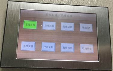 2. 第二步:講臺上面有個控制面板點擊“系統開機”按鈕,此鍵為錄播開關鍵,按下按鍵錄播主機開機,大約2分鐘過后錄播主機可以正常使用,關閉錄播系統請點擊系統關機按鈕。