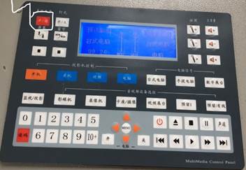 1. 第一步:按一下多媒體柜子中控面板上面紅色的開機鍵,一體機會自動加電和啟動電腦系統。