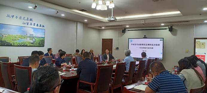 學(xué)校督導(dǎo)專家青小渠老師從畢業(yè)生專業(yè)素質(zhì)綜合測評的背景意義、方案設(shè)計、實施流程、持續(xù)改進等四個方面詳細介紹了2022年的試點工作經(jīng)驗。教學(xué)評估處副處長付玉就2023年此項工作做出了具體安排和部署,同時對今年的評估與認證、督導(dǎo)與提高、教師培養(yǎng)與教學(xué)競賽等方面工作提出了目標與要求。