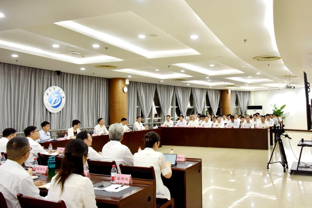省教育廳督導審計處、高教處、省教育評估院有關負責同志,專家組全體成員線上參會。校領導衡彤、郭建春、祝效華、李德海、周瑩,職能部門和直屬單位負責人、學院黨政負責人,以及南充校區處級及以上干部以線上或線下形式參會。