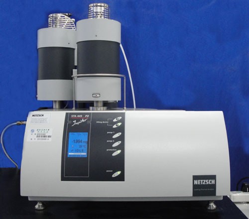 該設備為德國耐馳公司制造的STA449F3型同步熱綜合分析儀。可覆蓋-150至2000℃的寬廣的溫度范圍。可測試熔點、變化過程熱效應、相變溫度、失重溫度區間和失重速率等。