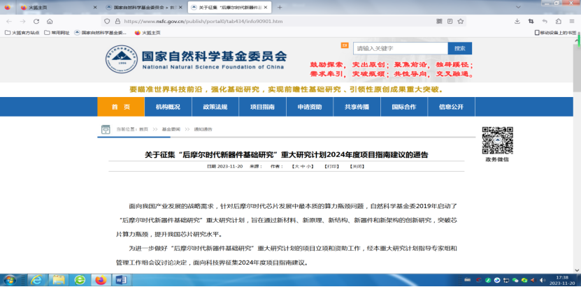 “后摩爾時代新器件基礎研究”重大研究計劃項目指南建議書