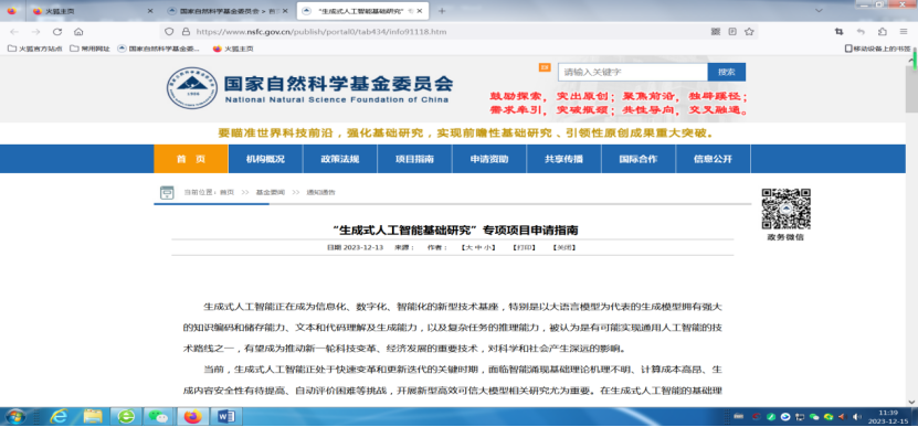 “生成式人工智能基礎研究”專項項目申請指南