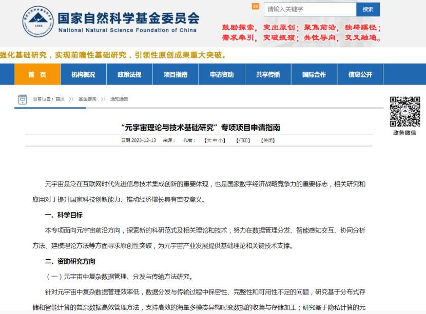 “元宇宙理論與技術基礎研究”專項項目申請指南