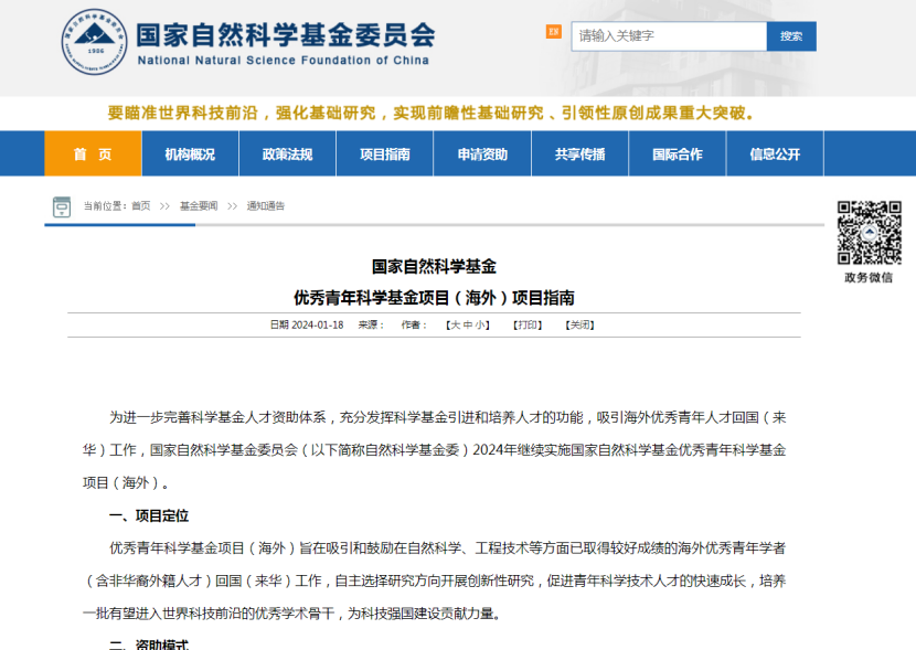 為進一步完善科學基金人才資助體系,充分發揮科學基金引進和培養人才的功能,吸引海外優秀青年人才回國(來華)工作,國家自然科學基金委員會(以下簡稱自然科學基金委)2024年繼續實施國家自然科學基金優秀青年科學基金項目(海外)。