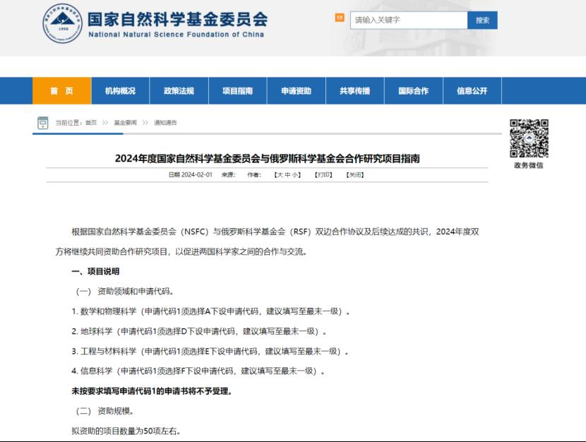 根據國家自然科學基金委員會(NSFC)與俄羅斯科學基金會(RSF)雙邊合作協議及后續達成的共識,2024年度雙方將繼續共同資助合作研究項目,以促進兩國科學家之間的合作與交流。