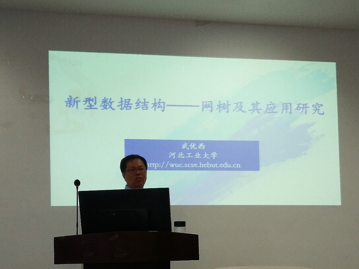 2018年9月12日下午,計(jì)算機(jī)科學(xué)學(xué)院有幸邀請到了河北工業(yè)大學(xué)武優(yōu)西教授分享“新型數(shù)據(jù)結(jié)構(gòu)——網(wǎng)樹及其應(yīng)用研究”報(bào)告。SMALE實(shí)驗(yàn)室閔帆教授帶領(lǐng)全體老師及學(xué)生參與了此次報(bào)告會,并在會后積極與武教授交流。