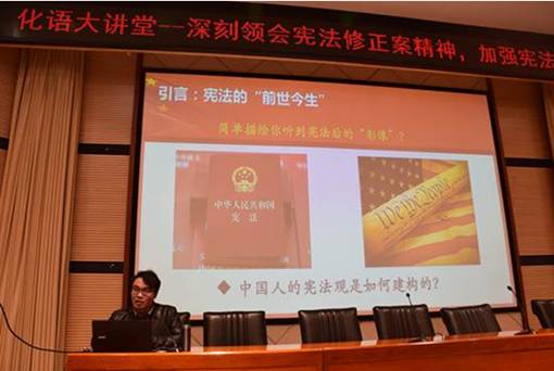 11月14日下午,化工院在思學樓A114舉辦化語大講堂第四講之“深刻領會憲法修正案精神,加強憲法實施”專題講座,化工院全體師生黨員、學生代表參與了學習活動。本次講座邀請到中共四川省委黨校法學教研部副主任胡業(yè)勛擔任主講人。