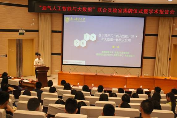 7月7日上午,國家高性能計算中心(成都分中心)與西南石油大學合作共建的“油氣人工智能與大數據聯合實驗室”揭牌儀式暨學術報告會于思學樓A114舉行。出席本次會議的有國務院參事、國家高性能計算中心(成都分中心)主任石勇教授,常務副主任何靜教授,南京郵電大學博士生導師、國家高性能計算中心(南京分中心)副主任季一木教授,科研處何蘇副處長,石工院李勇明副院長,地科院趙曉明副院長和徐云貴教授,計科院龔捷副院長和閔帆教授,理學院宋國杰副院長及我校相關專業的師生。人工智能研究院院長閔超主持了此次會議。