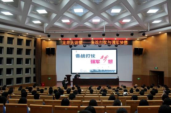為進(jìn)一步深化“不忘初心、牢記使命”主題教育,更好了解當(dāng)前的國防軍事形勢,11月14日晚,南充校區(qū)舉辦“龍井大講堂”。原南京陸軍指揮學(xué)院軍事訓(xùn)練系首席教授、軍事訓(xùn)練學(xué)科帶頭人胡堅(jiān)老師應(yīng)邀到校區(qū),作了題為“備戰(zhàn)打仗與強(qiáng)軍夢想”的形勢報(bào)告。學(xué)工部(團(tuán)委)黨支部、保衛(wèi)黨支部黨員和300余師生代表參加了講座。學(xué)生工作部(團(tuán)委)部長郝江嶺老師主持講座。