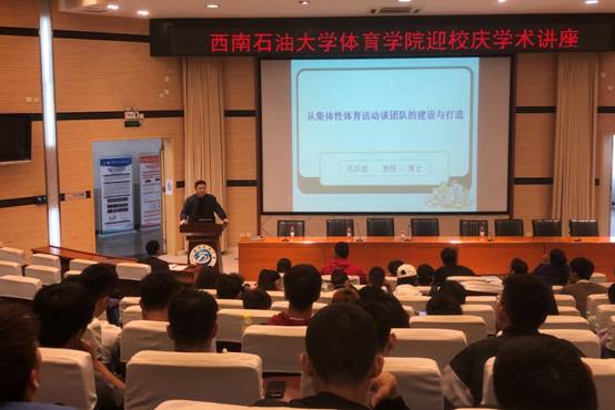 為喜迎校慶,增強學術氛圍,10月29日15:00,體育學院邀請重慶文理學院孔慶波教授在我校思學樓-A114學術報告廳作了題為《從集體性體育活動談團隊的建設與發展》的學術報告。體育學院全體師生參加了此次講座,體育學院副院長向劍鋒主持。
