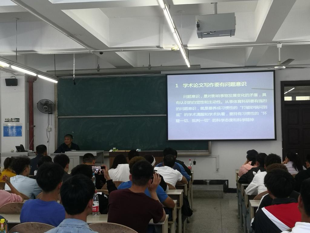 此次講座,王教授結合淵博的知識結構、豐富的研究經驗和學報多年的工作經歷,介紹了當前體育學術論文撰寫過程中的常見選題問題,深入淺出地剖析了體育學術論文撰寫的問題意識、問題發現、問題儲備、重視破題等選題環節技巧及注意事項。并建議在場師生要始終保持學術激情、學術執著、學術銳氣和學術膽識,及時跟蹤體育熱點問題、關注體育重大問題、思考體育焦點問題、敢于接觸體育基本問題、不舍體育難點問題和時刻留意體育專業問題。最后,王教授還與在場師生針對具體的選題問題進行了深入的交流。講座現場氛圍十分活躍,師生備受啟發。