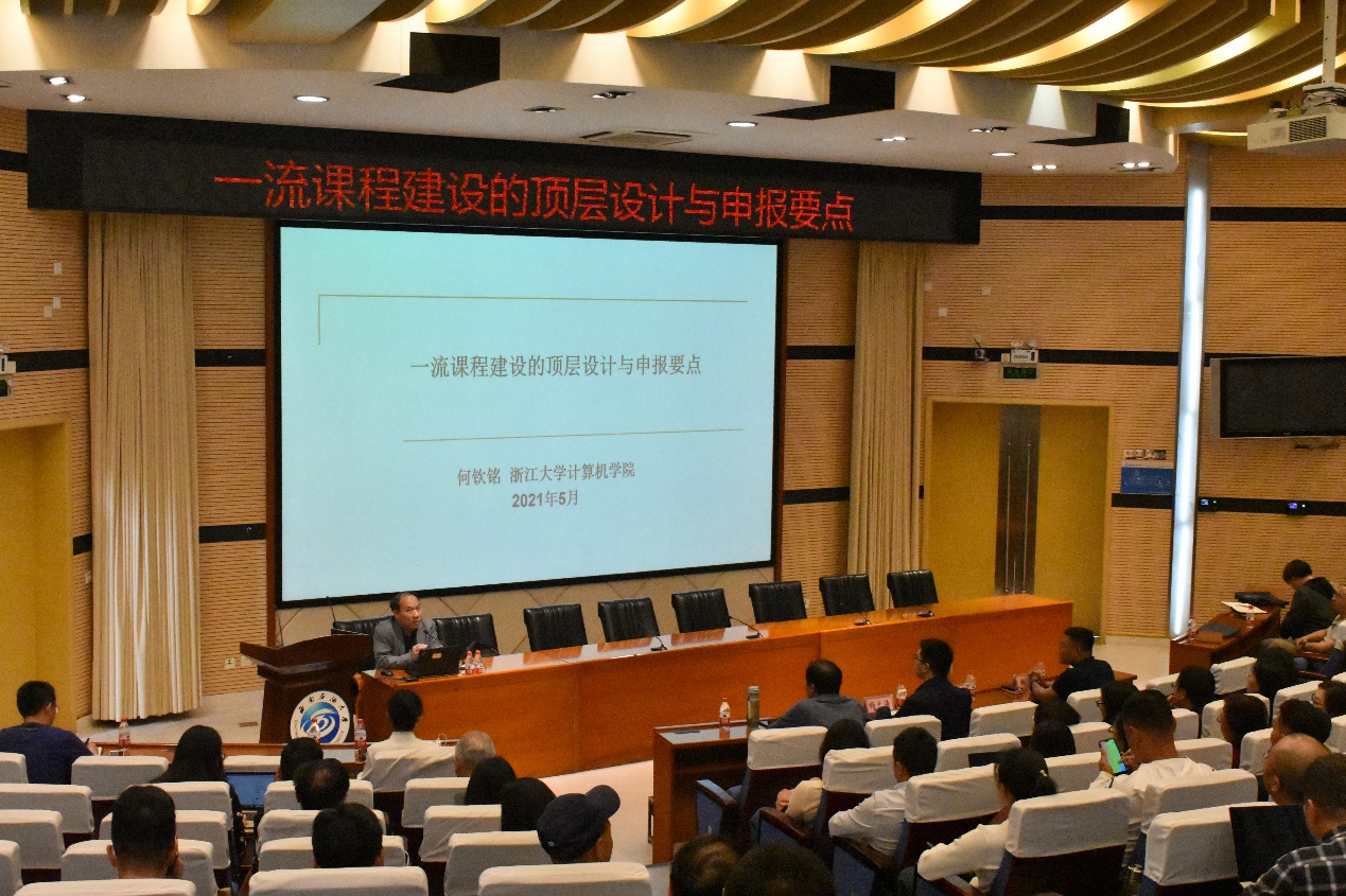 5月6日下午,教務(wù)處邀請(qǐng)教育部高等學(xué)校大學(xué)計(jì)算機(jī)課程教學(xué)指導(dǎo)委員會(huì)副主任委員、浙江大學(xué)計(jì)算機(jī)科學(xué)與技術(shù)學(xué)院何欽銘教授到我校作題為《一流課程建設(shè)的頂層設(shè)計(jì)與申報(bào)要點(diǎn)》專題報(bào)告。擬申報(bào)第二批國(guó)家級(jí)一流本科課程和校級(jí)及以上一流課程負(fù)責(zé)人及主要團(tuán)隊(duì)成員等100余人參加了會(huì)議。報(bào)告會(huì)由教務(wù)處副處長(zhǎng)楊火海主持。