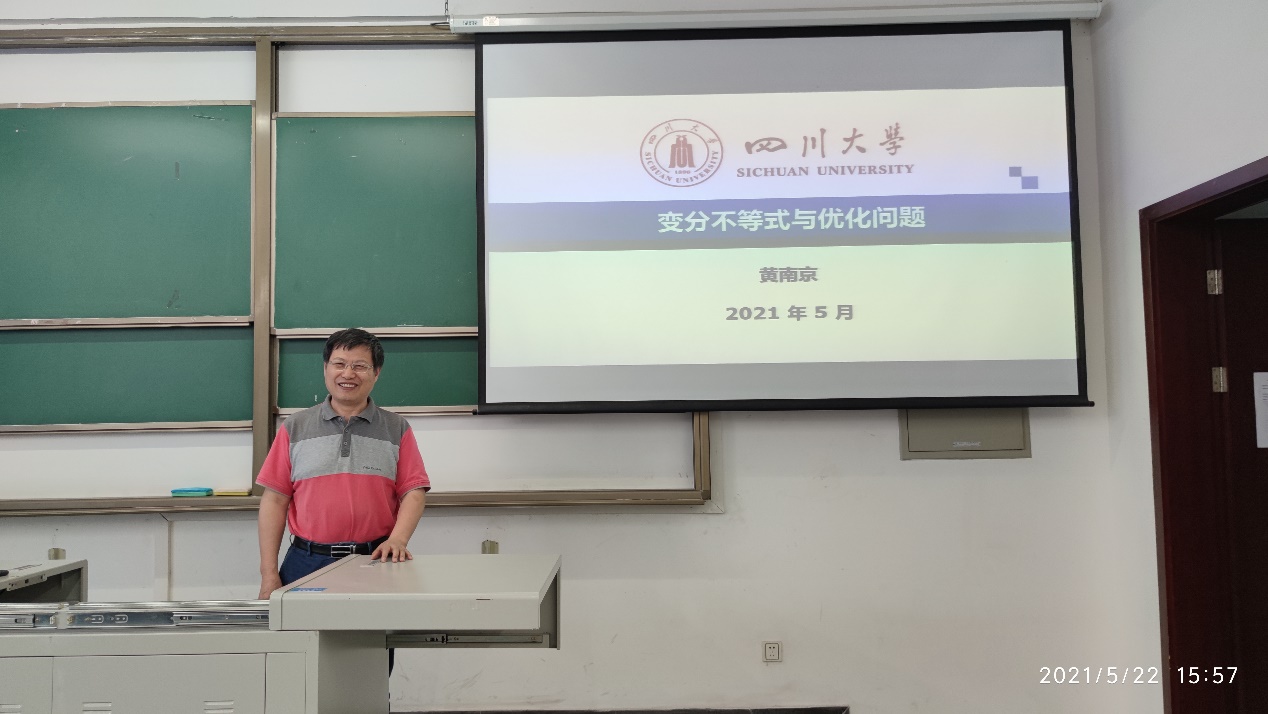 5月22日下午,四川大學黃南京教授和電子科技大學鐘守銘教授應邀到我院分別作了題為“變分不等式與優化問題”和“憶阻器神經網絡系統的穩定性分析”的學術報告。