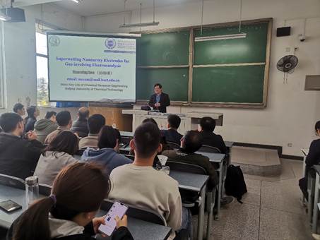 10月22日下午,北京化工大學孫曉明教授應邀來訪我院,并在明德樓B307帶來一場題為“氣體超浸潤納米陣列電極”的學術報告。此次報告會由化工院副院長唐鋆磊主持,部分教師、碩士研究生和博士研究生參加。