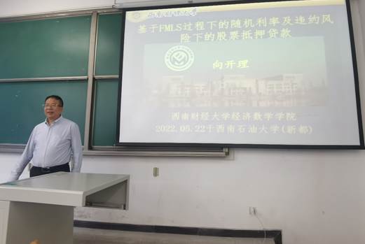 在企業經營過程中,通過股票抵押貸款補充流動性是一種常見的重要的運作,市場的變化和利率的隨機性給股票質押的定價帶來了不確定性。向教授首先介紹該方向的定價研究的背景及國內外研究現狀,然后重點介紹團隊主要研究成果:隨機利率及違約風險下的股票抵押貸款,基于FMLS過程下追加保證金的股票抵押貸款。