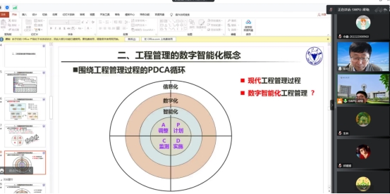 講座中,張宏教授圍繞工程管理的數字化智能化發展,并結合自己的研究工作對工程管理的數字化智能化驅動進行了系統的分析和歸納,全面的展現了現代數字技術的發展現狀,向我們立體闡明了工程管理的數字智能化概念及現代數字技術如何切入工程全壽命周期的PDCA管理工作、并分享了施工現場人體功效學干擾識別與評估和裝配式建筑施工構件吊裝延誤監測等例子。