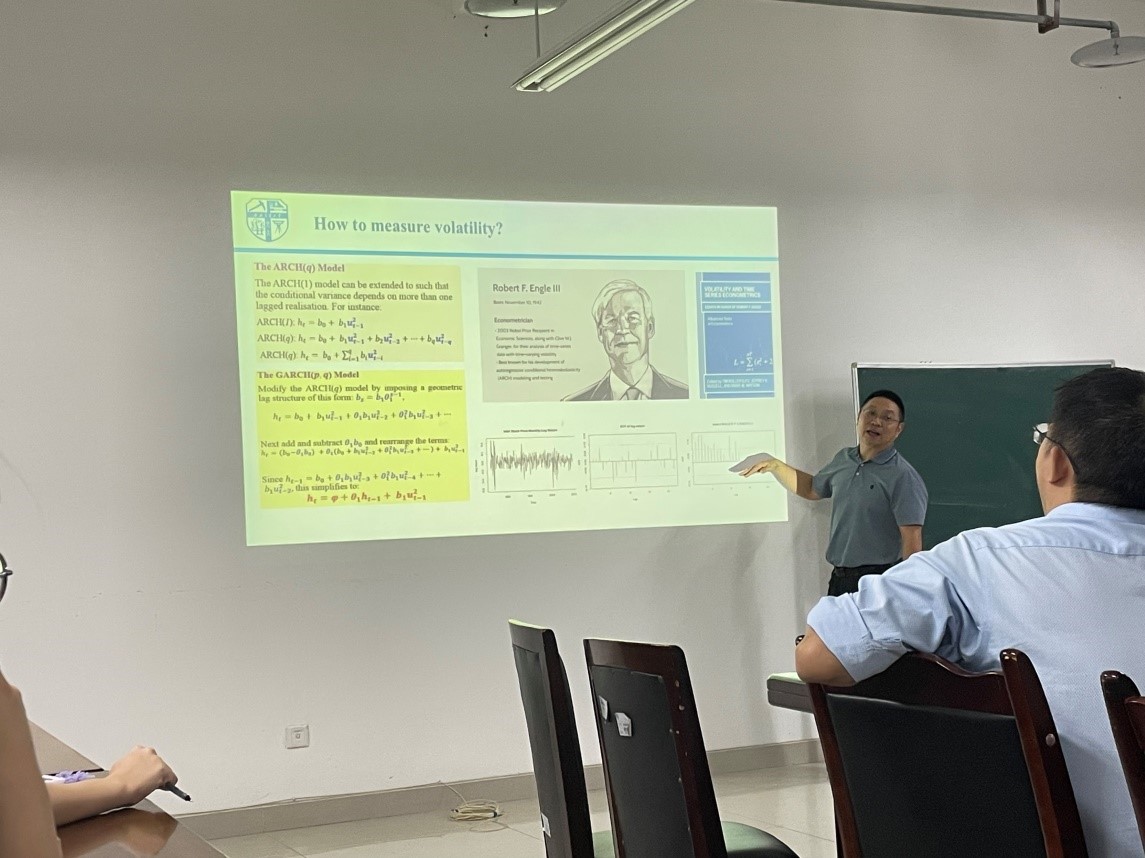 講座中,王璐教授首先解釋了波動性的概念,即價格或資產價格變化的不穩定性,并介紹了“極端波動性”的概念,這是價格劇烈波動的情況,通常伴隨著不確定性的增加。他還詳細介紹了如何使用GARCH模型(廣義自回歸條件異方差模型)來測量波動性,該模型被廣泛用于資產價格波動性的預測。隨后王教授轉向了能源市場,強調了能源市場波動性預測在能源交易和投資決策中的關鍵性。能源市場波動性對于能源政策、價格穩定性以及投資者的風險管理至關重要。