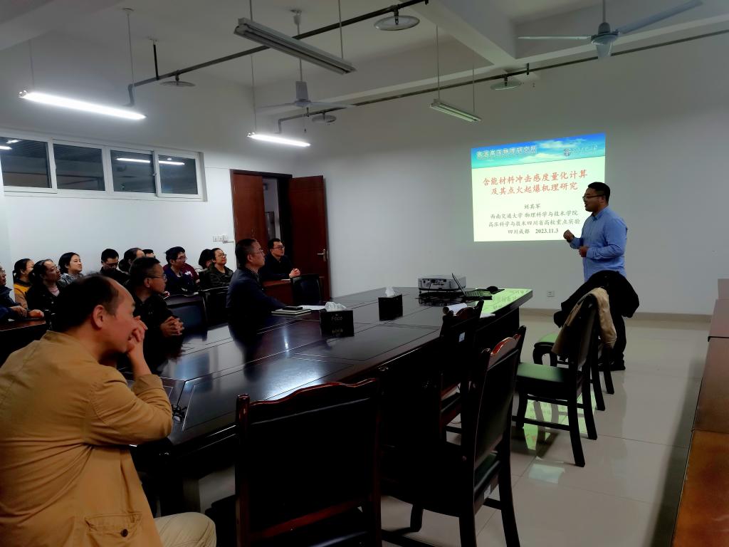 11月3日下午3:30,西南交通大學物理科學與技術學院劉其軍教授,應邀來我校為理學院教師作了題為“含能材料沖擊感度量化計算及其點火起爆機理研究”的學術報告。會議由理學院黨委書記劉廷平教授主持。
