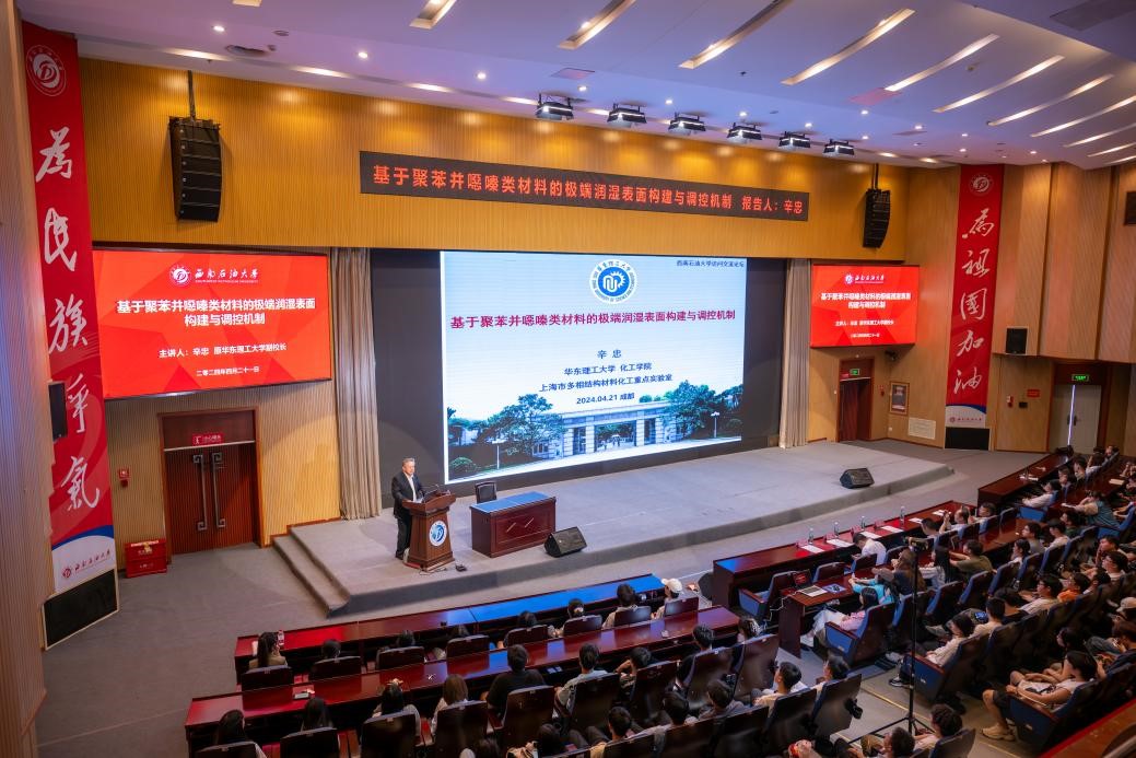 4月21日下午,歐洲自然科學院院士、華東理工大學博士生導師辛忠教授受邀在圖書館學術報告廳作了題為《基于聚苯并噁嗪類材料的極端潤濕表面構建與調控機制》的學術報告。講座由石工院、新材院、化工院、科研院聯合主辦,由石工院院長、黨委副書記張智主持,全校500余名師生到場聆聽學術報告。