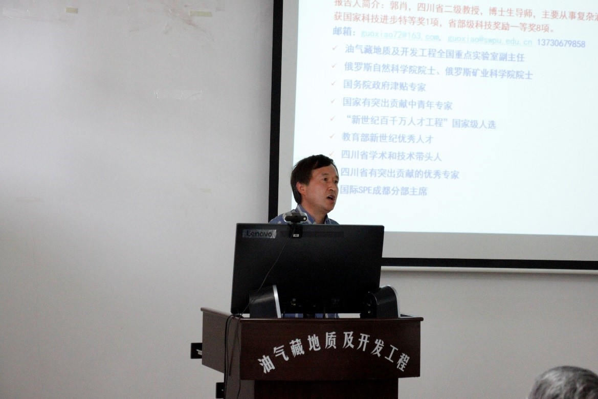 (2)郭肖教授報告了《低滲透油藏蓄能增滲》,重點以延長油田為例,發現了蓄能滲吸排油是特低滲透油藏的重要采油機理,創制了帶壓滲吸裝置,開展了高溫高壓蓄能滲吸實驗,建立了考慮啟動壓力梯度、滲吸效應、壓敏效應滲流數學模型,揭示了特低滲透儲層蓄能滲吸采油開采機理。