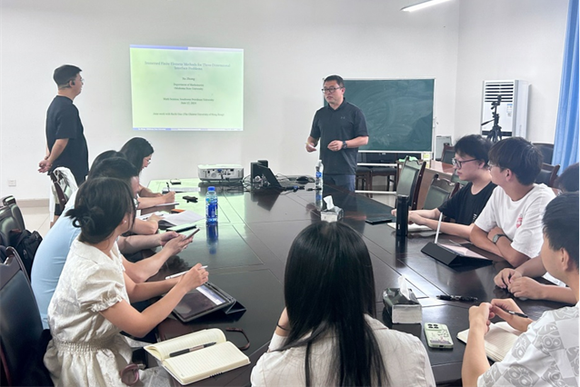 6月17日上午,美國俄克拉荷馬州立大學張旭教授應邀到我院作了題為“Immersed Finite Element Methods for Three-Dimensional Interface Problems”的學術報告。本次報告由副院長閔超教授主持,學院部分教師、研究生聆聽了講座。