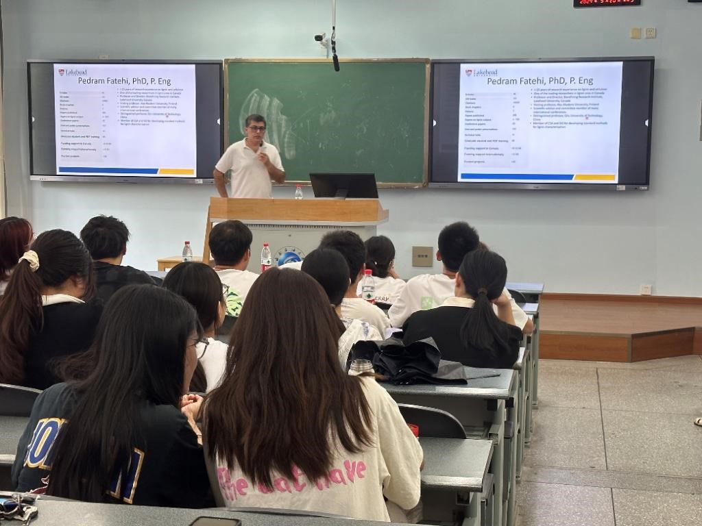 Pedram Fatehi教授的報告不僅展示了木質素基水溶性產品的最新研究進展,還為木質素的高值化利用提供了新的視角。本次學術報告會的成功舉辦,不僅促進了我院與國際學術界的交流合作,也為我院師生提供了一個與世界頂尖學者面對面交流的寶貴機會。報告結束后,同學們紛紛表示受益匪淺,此次報告極大地拓寬了他們的研究視野,也為未來的學術探索提供了寶貴的理論指導和實踐參考。
