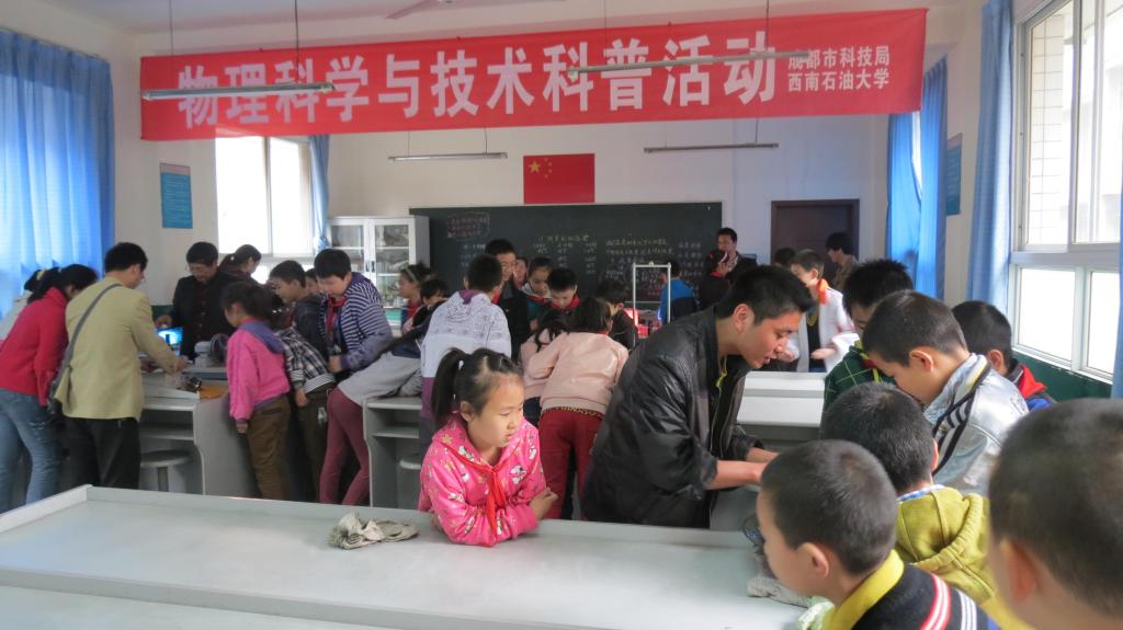 2014年,市科技局、市科協(xié)定于今年三月開展成都市第十九屆“科技之春”科普活動(dòng)月活動(dòng),西南石油大學(xué)物理科學(xué)與技術(shù)科普基地積極響應(yīng)??紤]我們的實(shí)際情況,本次活動(dòng)的重點(diǎn)我們放在香城小學(xué)、桂林小學(xué)等幾個(gè)鄉(xiāng)鎮(zhèn)中小學(xué)。到目前,基地共舉辦了三次活動(dòng),受到同學(xué)們及參觀者的熱烈歡迎,達(dá)到了預(yù)期目的,取得了良好效果。