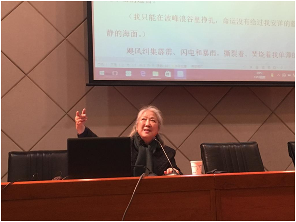 在講學的過程中,陸群教授結合多年的主持與朗誦經驗,積極的與同學互動,通過指導三位播音與主持專業學生在現場即興朗誦,傳授給學子們在朗誦中情、聲、氣關系的概念。陸群教授認為朗誦,就是一個個情感的連接點,一定要在朗誦中學會理解、解讀、感受文字。陸群老師對朗誦的熱愛深深的感染著在場的每一位,說到動情時,她告訴我們:“是語言工作者讓文字有了生命,讓躺著的文字站了起來、飛了起來。我們是帆,是乘風破浪的帆。未來的語言工作者將不可限量!”