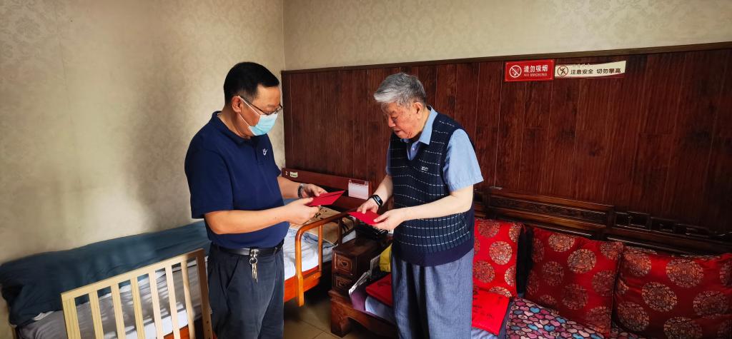 88歲的老黨員、老專家、老領導李士倫,離休后熱心關心下一代工作,牽頭成立“師愛獎學金”,堅持為青年學生講黨課,為青年師生分享人生感悟。幾年前,他妻子身患阿爾茨海默病,完全喪失認知能力,夫妻二人居住在養老院,每月固定支出費用2萬元。在此情況下,他毅然出售一套住房,于2022年9月向“師愛獎學金”捐資50萬元。在他們入住的老年公寓,離退休黨委書記吳本元、離退休工作處處長侯忠建與他親切交談,仔細詢問日常起居、健康狀況、子女情況,對他在關心下一代工作中的突出事跡表示敬仰,向他送上慰問金,祝愿他們健康長壽。