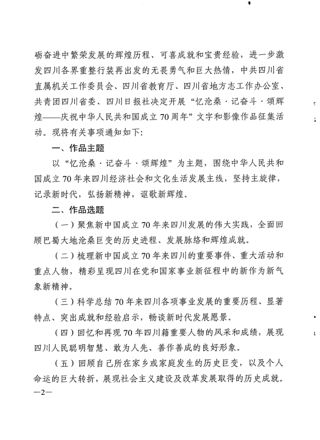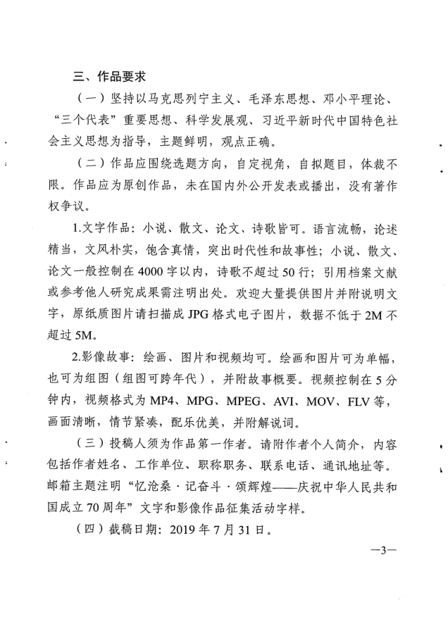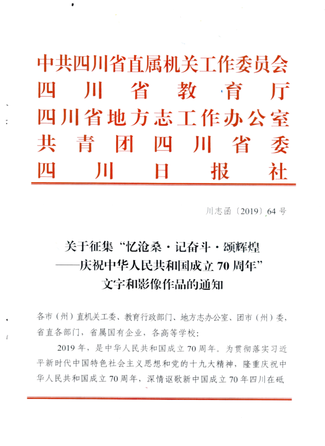 關于征集“憶滄桑、記奮斗、頌輝煌——慶祝中華人民共和國成立70周年”文字和影像作品的通知