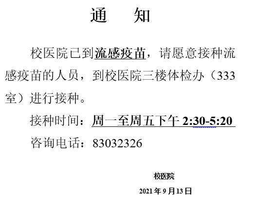 流感疫苗接種通知