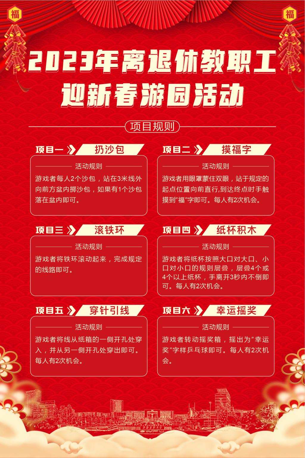 1、本次迎新春游園活動(dòng)共設(shè)6個(gè)游戲項(xiàng)目,任意選擇其中3個(gè)項(xiàng)目參加即可。