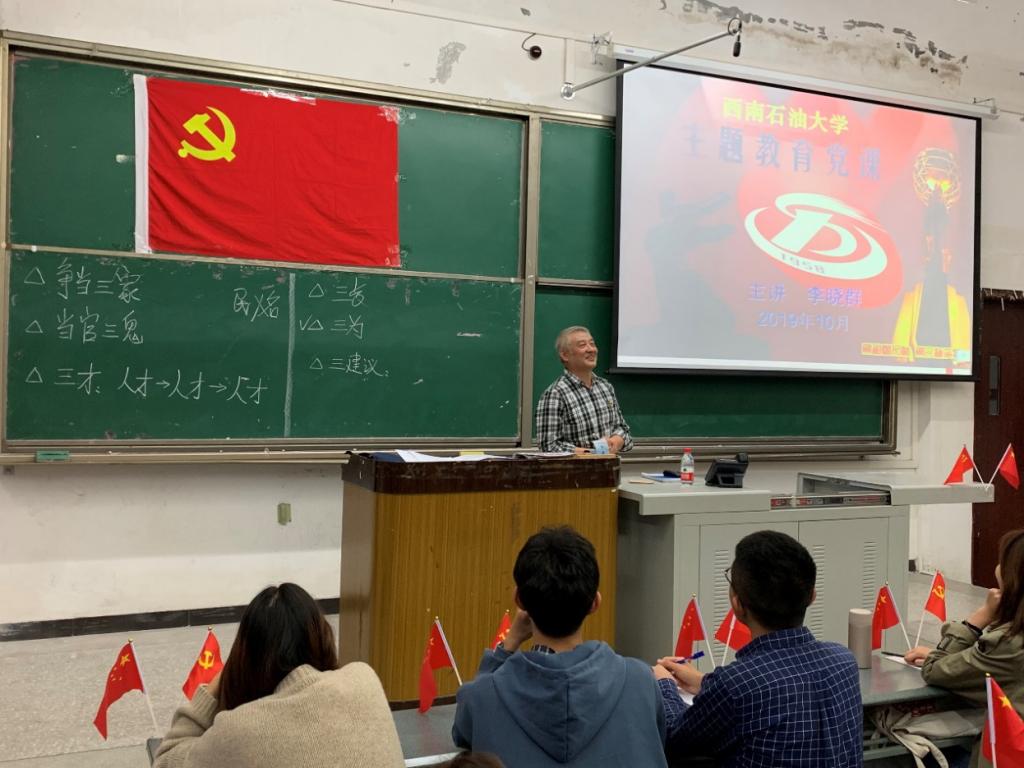 新時代,新征程,立志向,樹精神,青年需以不忘之初心,牢記時代之使命。黨課上,李曉群先后列舉多個黨員的事跡,帶同學們走進老黨員的一生,用生動的故事向同學們展示了革命精神,闡述了入黨的重要性。李曉群從“堅守初心不忘本”“勇擔使命敢作為”“砥礪奮進見行動”三個方面,全面回顧、梳理了西南石大共產黨員的“初心”,闡釋了“使命”的重要意義,強調廣大學生黨員,既要看到自身發光發熱的亮點,又要看到差距和不足,鍛煉本領,砥礪前行。