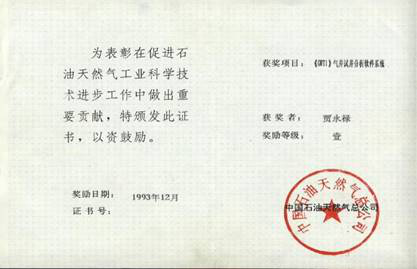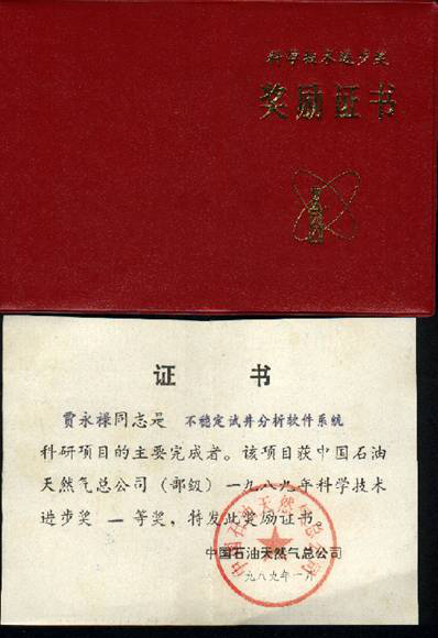 微機室的發展也保證和推動了我們科研的發展和進步,所以在上世紀八九十年代我們開發研究室陸續取得一些重要科研成果:1989年,“微機在油氣田開發中的應用”獲得四川省科技進步三等獎、“不穩定試井分析軟件系統”獲得中國石油天然氣集團公司科技進步一等獎,該項目1990年還獲得國家科技進步三等獎;1993年,“GWTI氣井試井分析軟件系統”獲得中國石油天然氣集團公司科技進步一等獎,1998年,“單質—雙重介質不穩定試井分析軟件系統”獲得四川省科技進步二等獎。