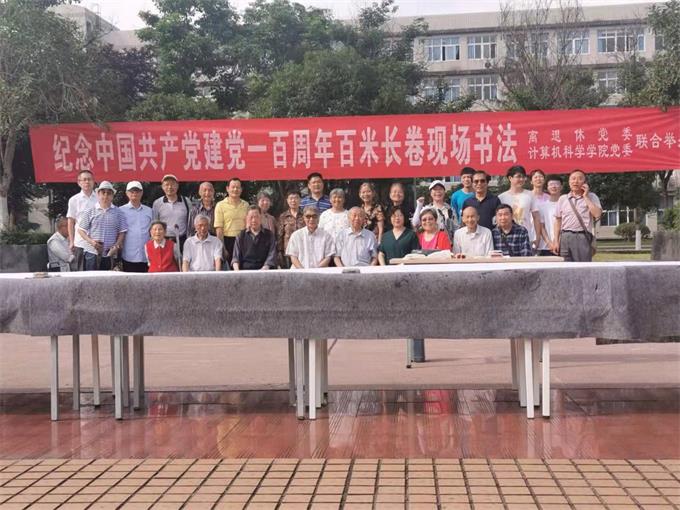 6月5日,由離退休黨委和計(jì)算機(jī)科學(xué)學(xué)院黨委聯(lián)合舉辦的“紀(jì)念中國(guó)共產(chǎn)黨建黨一百周年百米長(zhǎng)卷現(xiàn)場(chǎng)書(shū)法”活動(dòng)在博學(xué)樓廣場(chǎng)成功舉行。離退休工作處領(lǐng)導(dǎo)班子、頤年詩(shī)書(shū)畫(huà)攝影社成員和部分學(xué)生參加了活動(dòng)。