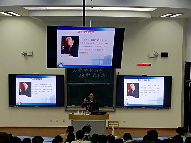 向發全從學校成立背景與歷史變革、歷代石大青年的典型故事以及石大青年典型故事的啟示三個方面,通過圖片、事例等方式詳細講解了從首任院長馬載等前輩懷揣“為石油而生、為石油而息”的興油報國愿景開啟破常規辦學興校,到現如今學校“雙一流”內涵式高質量發展的辦學歷程,重點講述了李士倫、羅平亞等老一輩教師青年時期求學、工作經歷以及劉宸等先進典型故事。