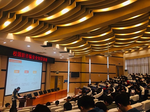 近期,電信詐騙從廣撒網式向精準詐騙越演越烈。為了從源頭上防范電信詐騙犯罪,切實保護同學們的人身和財產安全。11月21日,保衛處協同石工院在思學樓A114開展了“預防電信詐騙 共建和諧校園”安全知識講座。講座由保衛處治安科科長袁苛主講,新都區公安分局駐校警官黃衛華、校團委素質教育辦公室主任溫登峰、以及來自石工院學生代表150余人出席活動。