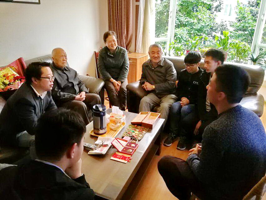 重陽佳節(jié)當(dāng)天上午,武裝部辦公室主任王建林帶領(lǐng)國防軍事協(xié)會的6名同學(xué)到我校97歲高齡的老紅軍、老干部楊天貴家中,代表武裝部向楊老帶去節(jié)日的問候。楊老及其家人對于王建林師生一行的到來感到非常欣慰。