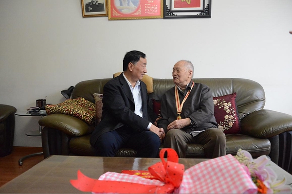 今年是紅軍長征勝利80周年。今天上午,校黨委書記孫一平登門看望慰問了老紅軍楊天貴,向楊老表達了親切的問候,給他佩上“紅軍長征勝利80周年紀念章”,并送上鮮花和慰問金。