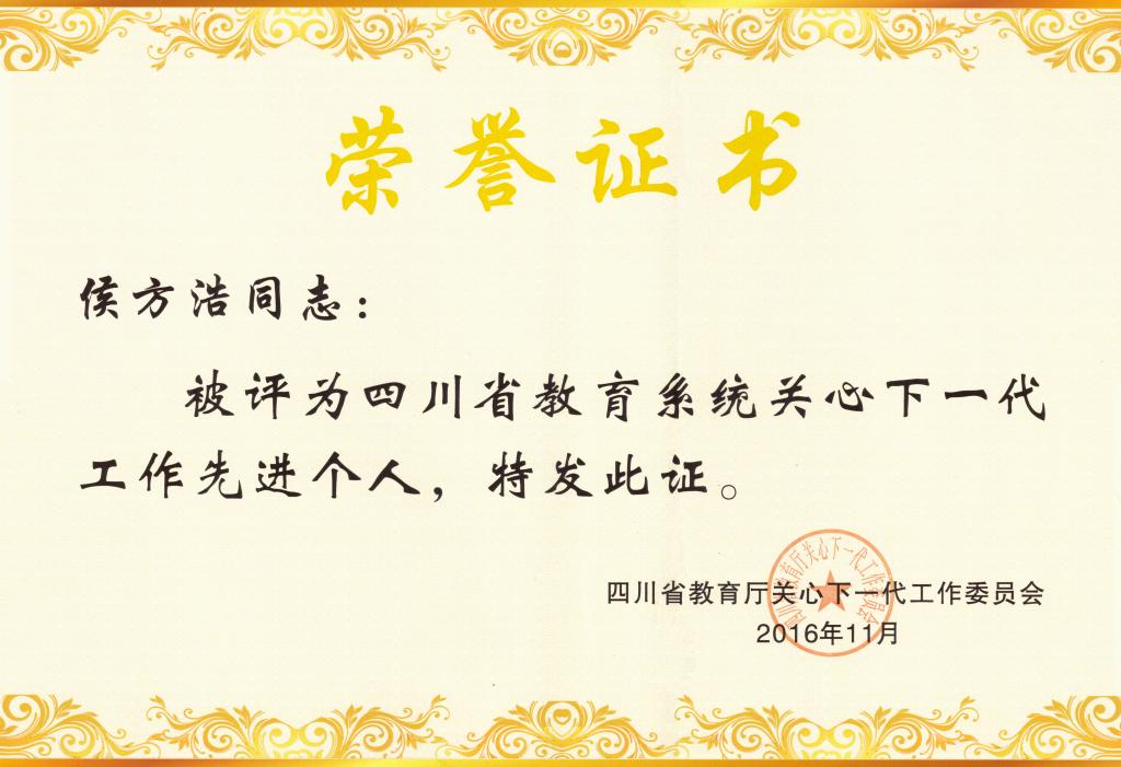 12月8日,紀念四川省教育廳關工委成立 25 周年活動暨全省 教育系統關心下一代工作會議在成都召開,會議學習貫徹習近平總書記系列重要講話和對關心下一代工作重要指示精神,貫徹落實紀念教育部關工委成立 25 周年暨第五次工作會議和四川省關心下一代工作會議精神,總結交流我省教育系統關工委工作,表揚全省教育系統關心下一代工作先進集體和先進個人,研究部署下一階段工作。我校關工委被評為“全省教育系統關心下一代工作先進集體”,退休教師侯方浩被評為“全省教育系統關心下一代工作先進個人”。校關工委秘書長劉紹新出席會議,并代表校關工委和侯方浩接受頒獎。
