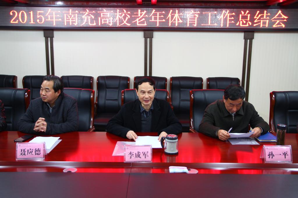 南充高校老體協常務副主席、原南充市政協副主席馮慶煜總結2015年南充高校老年體育工作